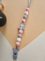 Цей стильний і зручний тримач для пустушки допоможе запобігти її падінню на підлогу або втраті. Він виготовлений із м’яких та безпечних силіконових намистин, які також можуть використовуватися як прорізувач для зубів. Завдяки надійній застібці тримач легко кріпиться до одягу малюка, забезпечуючи комфорт та безпеку. Тримач доступний у різних кольорах і дизайнах, що підійде до стилю вашого малюка, зокрема з елементами, що імітують зодіакальні знаки або яскраві образи.