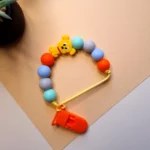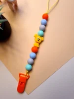 Цей стильний і зручний тримач для пустушки допоможе запобігти її падінню на підлогу або втраті. Він виготовлений із м’яких та безпечних силіконових намистин, які також можуть використовуватися як прорізувач для зубів. Завдяки надійній застібці тримач легко кріпиться до одягу малюка, забезпечуючи комфорт та безпеку. Тримач доступний у різних кольорах і дизайнах, що підійде до стилю вашого малюка, зокрема з елементами, що імітують зодіакальні знаки або яскраві образи.